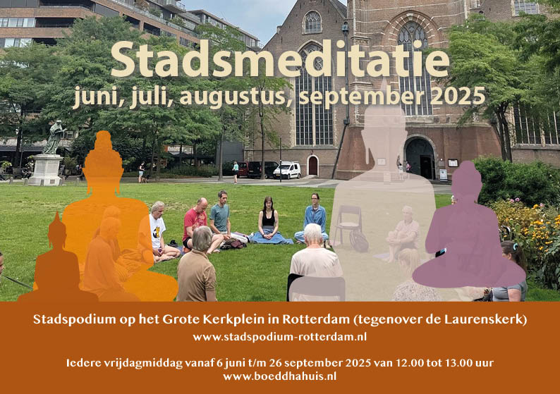 In de maanden juni, juli, augustus en september is er iedere vrijdag tussen de middag een uur stiltemeditatie middenin de stad. Bij deze bijeenkomsten zijn er minimaal twee begeleiders van steeds andere Boeddhahuisgroepen aanwezig om vooraf een korte instructie te geven en na afloop eventuele vragen te beantwoorden.